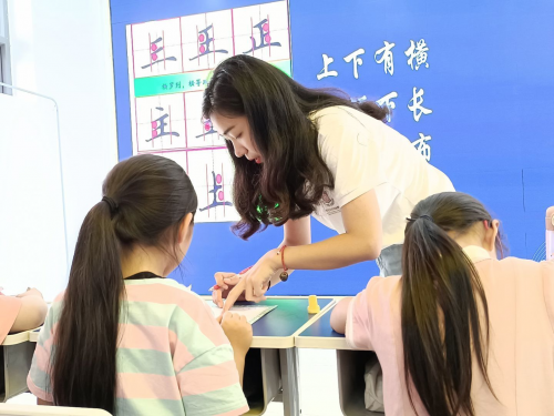 志愿者教师教给学生汉字间架结构