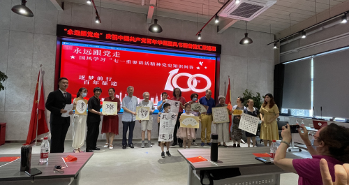 ——国风开展学习“七一”重要讲话精神党史知识问答活动 2021年7月20日上午十时,在海淀区学院路街道社区服务中心多功能厅,来自北京国风书画普及教育学会的会员及部分学院路街道的居民共同唱响了《没有共产党就没有新中国》。“没有共产党就没有新中国,共产党辛劳为民族,共产党他一心救中国;他指给了人民解放的道路,他领导中国走向光明……”