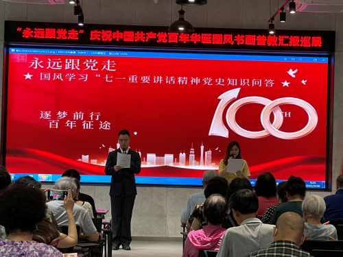 学史悟践, 国风学习“七一”重要讲话精神党史知识问答活动是“永远跟党走”庆祝中国共产党百年华诞国风书画普教汇报巡展的主要组成部分,国风书画普教汇报巡展由北京市文联组联部、北京书法家协会学术指导,北京国风书画普及教育学会、海淀区学院路街道妇联共同主办。(文图:刘琳 风华正茂) |