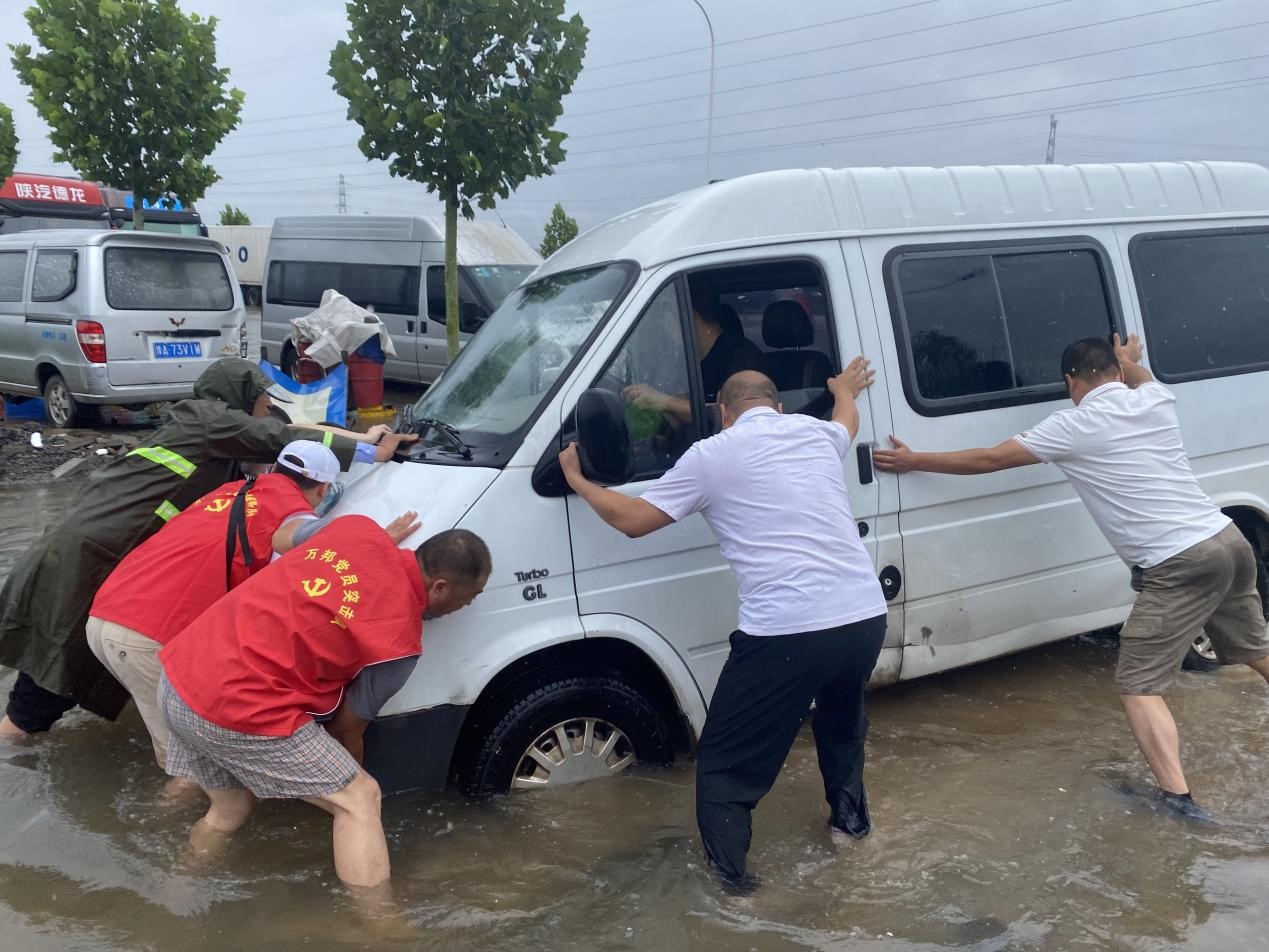 集团党委号召全体员工汛情不消,人员不撤岗,协助商户防灾、减灾,全力救援车辆和货物。截止7月22日,中牟天晴,万邦共出动5000余人次,近120个小时的风雨交加中,万邦人齐心协力,谱写了一曲与恶劣天气顽强抗争的赞歌。