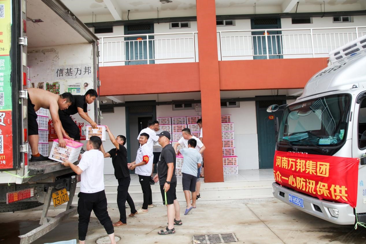 在做好抗洪救灾和农产品物资保供的同时,河南万邦国际集团积极履行社会责任,在董事长杨广立,党委书记、总裁李保全带领下,员工、商户与灾区人民一同抗灾救灾,用实际行动践行万邦人互助友爱、共度时艰的良好品格,用爱心为抗击洪水筑起一道铜墙铁壁。