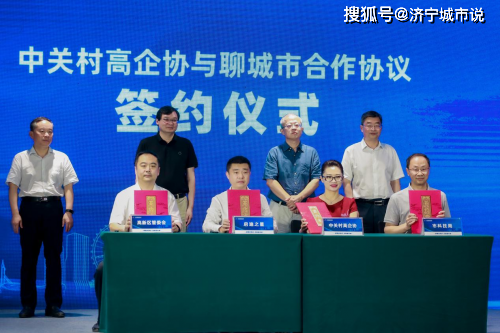 ▲聊城市科技局、高新区管委会、中关村高新技术企业协会、启迪之星共同签订《中关村高企协与聊城市合作协议》
