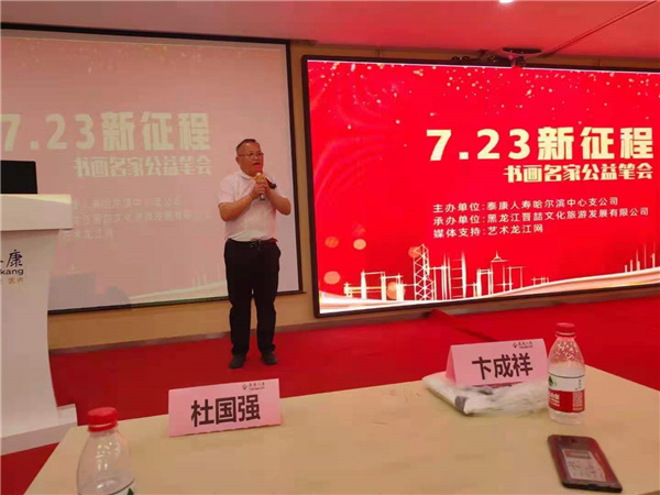 火红的七月,激荡的情怀!泰康人寿保险公司哈尔滨支公司与黑龙江晋喆文化旅游发展有限公司于7月23日也就是党真正生日这一天,继续隆重举行了庆祝中国共产党成立100 周年火红的七月风采暨“7·23”书画名家公益笔会,以秉持"文化自信理念、弘扬中华传统文化精神将纪念活动推向高潮!