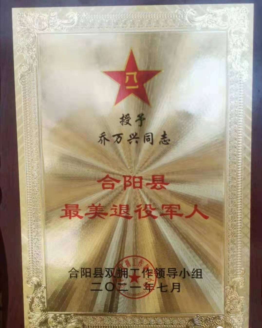 ——乔万兴荣获2021年最美退役军人荣誉称号