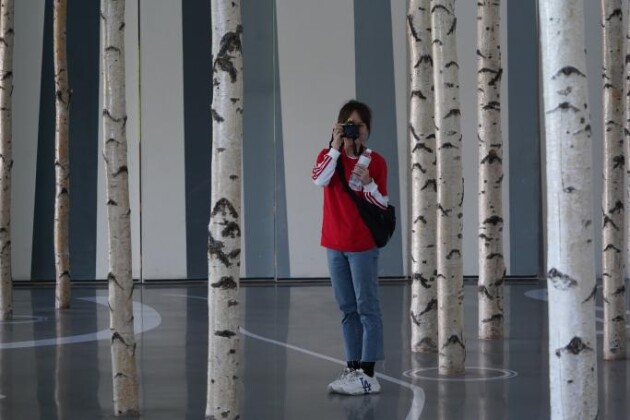 走进工厂便是设计师别具匠心的设计——室内白桦林,身处白桦林,听得见鸟鸣;看得见小溪;摸得到灵芝,上空还飞舞着群群白鸽,这一番美景竟使得人流连忘返。