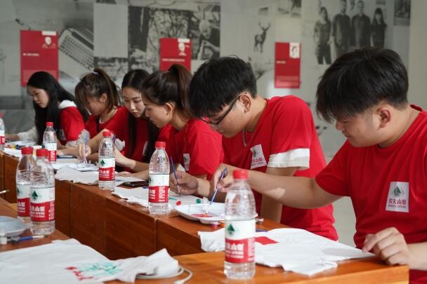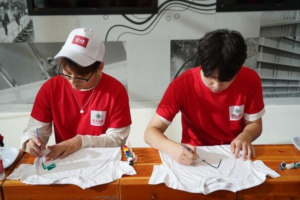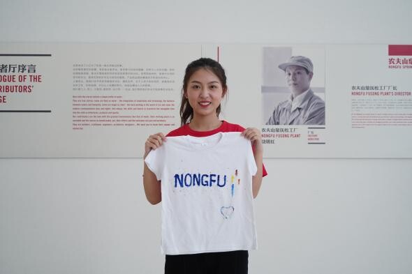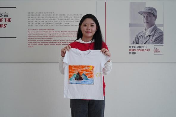 实验后,大学生们开启了创作模式,在白色T恤上进行农夫山泉主题彩绘,一件件带有灵感和生命的T恤就这样诞生了。