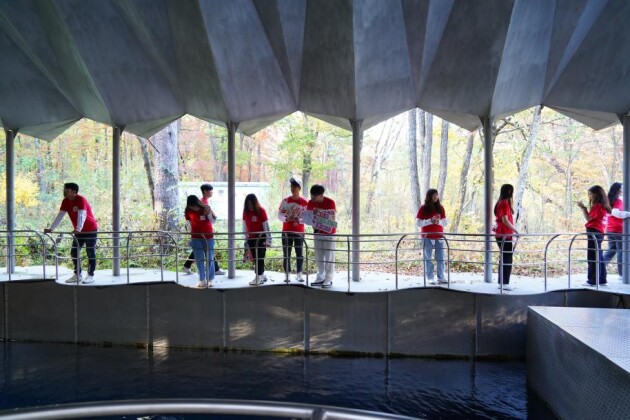 终于,大学生们来到了农夫山泉水源地,他们无比的兴奋地走进天然氧吧,感受负氧离子的充盈,欣赏着金秋的美丽景色。在源头进行取水,品尝到了原汁原味,感受着来自大自然的馈赠。