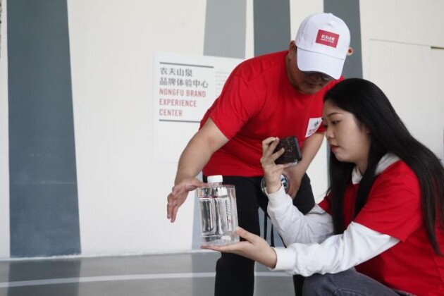 走出科技的世界,大学生们来到了实验区,进行了水的酸碱度实验。 农夫山泉取自长白山原始森林的地下涌泉——莫涯泉。水中含多种矿物元素,是以偏硅酸为特征指标的低钠淡矿泉水。 在实验中,大学生们亲手检验出农夫山泉是对人体有益的弱碱性水。