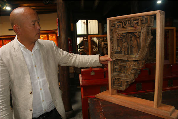 ![]() 作为传统村落中最精华的古建筑,承载着中国农耕文明的进程,也是一个村落历史脉络的载体,记录了一个时代的印痕和岁月的年轮。一座戏台,一座庙,一座牌楼,一座曾经居住过数十人甚至上百人的古屋……其背后都蕴藏着内容丰富的故事,孕育着独特的人文历史。只是因为有的古建筑经历了无数风雨的侵袭而倒塌,有的因火灾战乱而只剩下了其中的一部分,有的因要做路或盖成现代化的房子而整体拆除……对即将消失的古建筑而言,每一次收藏修缮,都是一次保护。在武义有这么一位痴迷者利用20多年时间收藏修缮了500多幢的古建筑,让很多人找回了一个时代和一个村庄,一个城市的记忆。他就是武义县“钭氏民俗用品展示馆”馆长钭文红。 ![]() 1970年出生的钭文红是浙江省武义县履坦镇叶长埠村人,其祖籍是缙云。爷爷因战乱逃到了叶长埠,并买了一幢建筑面积200多平方米的古屋,全家人就在此生活,成为了叶长埠村人。古屋虽然不精致,但至今也已有200多年的历史,钭文红就出生在这幢古屋里,在此长大,加上初中毕业后,他就学木匠手艺,因此对木制的建筑、构件情有独钟。叶长埠村有数十幢明清古建筑,钭文红经常在期间流连忘返,对着那些精美的雕刻驻足观看,击节赞叹。 ![]() 28年前,钭文红以1000元资金做起了古玩生意,因为资本薄,收购来的铜钱银元、锡壶、烛座等,有得赚就卖掉。钭文红说:“那时做这门生意的人不多,经常一天能收到10多斤银元什么的,两块钱一枚的银元当时他转手就能卖60到100元一枚,现在基本可以卖到七八百元,像“双龙银元”已价值三四千元一枚。” 因为经常在外面跑,钭文红经常看到很多村落里那些传统文化的痕迹,一幢幢老屋,一座座门楼……这些古人智慧的结晶,历经时代变迁,有的虽破败颓圮,但魅力依然,精美古朴。每每看到这些古建筑,因自然风化和修缮匮乏得不到好的保护,消失在岁月的时光中,有时候看到一座建筑精美的古建筑,几年后或拆除或倒塌,或因盗窃件构残缺不全,钭文红心痛不已。 ![]() 作为一名木匠,钭文红比一般人更加体会到一件件各种人物、动物、花木的雕刻花费了匠人不知多少的心血,每一座古建筑或仅仅只是一件“牛腿”,其背后都蕴藏着精彩的故事,孕育着独特的人文历史。钭文红内心一直都有着想把这些古建筑都收藏起来、修缮回去的涌动。 大概从2003年开始,有了一定资金的钭文红决定付之行动,把主要精力转向收藏、修缮古建筑方面。他知道,保护它们,不光是一座古建筑的存活,哪怕是一件较为完整的雕刻,可能就是一段历史的保留,是一个村庄过去、现在、未来的见证。 钭文红收藏古建筑和构件、配套用具等,一开始在武义当地和周边县市跑,慢慢地脚步延伸到了安徽、江西、山东等乡村。在这一过程中,碰到过各种各样的情况。 ![]() 一次他到金华收购时,发现半张边沿雕刻着龙凤精美图案的老桌子。一打听之下,这半张桌子是当时兄弟分家而一分为二的,钭文红痛惜不已,他先说通弟弟同意将半张桌子卖给他,但对哥哥做了很多工作,也加了钱,还是不肯出售。后来钭文红去运那半张桌子时,那家的哥哥把路堵住了,不让运走,还砸坏了车子的玻璃,报警后才把那半张桌子运回来。另有一次一件精美的雕刻卖家已同意卖给钭文红,并且已经收了钭文红付的钱,车子在半路上被卖家的儿子拦了下来,拿了回去。像这样的情况,钭文红碰到过多次。 另有一次钭文红在一家的猪圈,用一块雕刻着“巡回带水”的石头牌匾用于猪栏,他以80元的价格收购到手,心里欢喜了几天。15年前的一天,钭文红在宣平与一位在溪水边洗衣服的婆婆聊天,得知她家有两对旗杆石,有人来买,她都没卖。钭文红看到这是各自用4块石头做成一对的旗杆石,呈六角形,满是雕花,还有形态各异的八仙浮雕,很是罕见。经过多次沟通,婆婆把其中的一对以8000元的价格卖给了他,钭文红则以1万元的价格卖给了他人。如果放到现在,至少可以卖到40万元的价格。现在放置在武义璟园一座古建筑里的一张“千工床”是当年钭文红花了9万元钱从一个原来的大户人家家中收购来的,他转手12万卖掉,现在100万元别人也不一定肯出手了。每每说到这些,钭文红深感遗憾。 ![]() 在叶长埠村,钭文红有个5000多平方米的修复场。木匠们正在对钭文红从全国各地收购回来的古建筑和构件进行修复。笔者看到每一件被拆下来的砖瓦木料被有序的编好号注明原位置,所有构件都被归置齐整。钭文红说,这是方便将来复原时更好的安装;而那些数不清的石柱、门墩、石狮、门楼、拴马桩、马槽……都被分门别类整理罗列在修复场的各个角落。雕花大床、梳妆台、牌匾,雕刻着各种人物、花鸟的“牛腿”等则都放在“钭氏民俗用品展示馆”内供游客参观。 钭文红坚持最大程度“修旧如旧”,尽量保护古建筑群原本的风貌。古建筑的结构大部分是木质结构,细部台基、立柱、斗拱和屋顶结构繁杂,门窗和天花板方面形式繁多,图案包罗万象,内部结构内容丰富。正因为如此,对这些古建筑的各个细节实现“全方位”的保护和还原,就增加了极大的施工难度,对技术方面可以说是一种极大的要求。为了更好的保护它们,钭文红聘请了20多位有经验的工匠,对老建筑部件进行整修、组合等处理。 ![]() 今年72岁的廖赛余从15岁就开始学木匠,锯子、刨子、凿子等老木匠的工