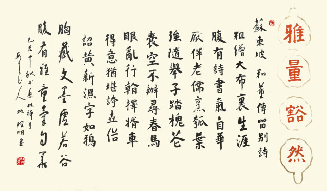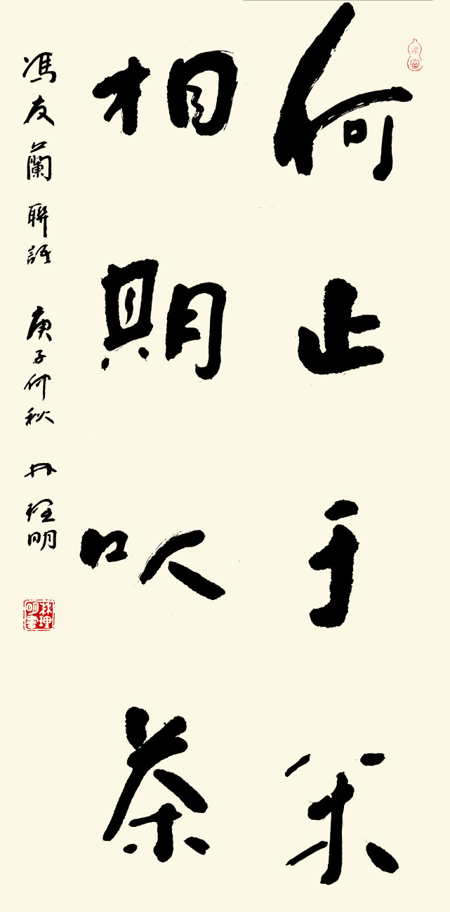 诗人写行草,更见遂心应手的洒脱功夫。他心含妙丽诗篇,笔作书法载道,写出来的行草作品极具晋代文人的信札书风。果然是深师二王的上等取法,经由对兰亭序、中秋帖、伯远帖等诸帖的心追手临,同样可以把行划写得一点之内殊衄挫于毫芒,在一划之间变起伏于锋杪!