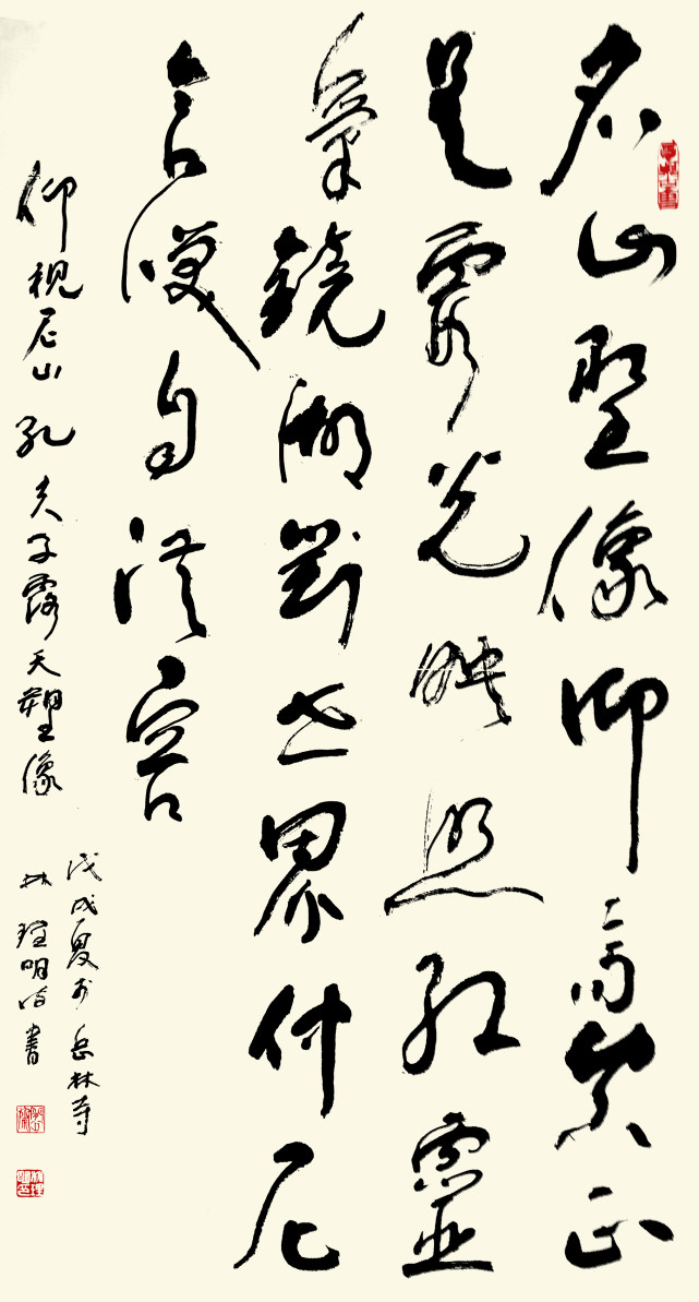 精极笔法,水镜明辨。笔墨功夫精硏至极,书论琢磨精硏覃思,再加上可作诗词的文人修养,让林理明先生在书界以法而铸专业,以才而写个性,起笔落笔,写就金书锦字,隶书草书可以令书法龙脉古今相续!