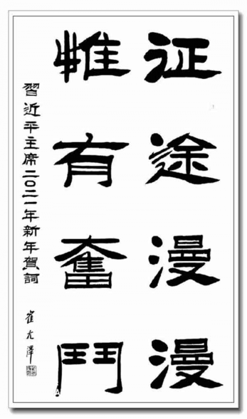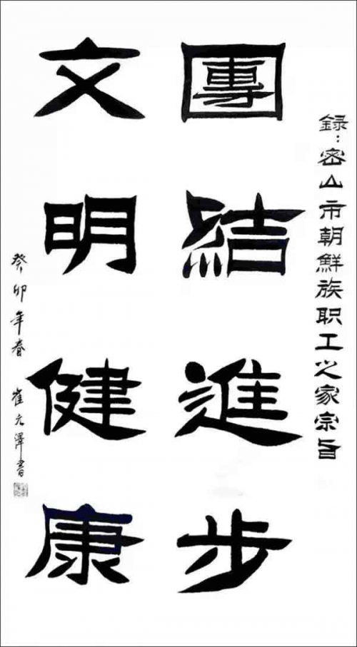 【名家简介】 笔墨遒健 高古肃穆——记著名书法家崔元泽 翰墨艺术是一种以字形为载体的综合艺术体,而它所包含的,是一个民族的智慧,更是每一个习书人的文化精神与内涵品韵!今著名书法家崔元泽先生正是一位充分体悟了翰墨思想与人文精神的艺术名家,先生的书法,不但成功的继承了传统的隶书美学,他更是在此基础上加以创新,使自身的隶书作品展现全新的艺术风貌和内涵!其隶书无论是在用笔上,还是用墨上,亦或章法结构上,他都做到了活而不杂,变而有度。与此同时,先生高度的艺术修养和学识,也让其书法在精神层面上呈现出了文人所具有的高雅品质!欣赏先生的众幅隶书作品,全然是一种艺术享受,能使人沉浸于其中而不能自拔!从容典雅,匠心独运! 所谓书艺之道在于睿智,而书艺之妙则在于常思。今先生作书,正深谙于此道,其隶书笔法并不是那种极具血性的狂飒类型,而是以轻松为势,笔线空灵蕴藉,古意盎然,能于稳健中不动声色!一笔一划,是谓缓而慢,厚而重,宛若谦谦君子般恭敬又朴素!也正因此,其隶书字线才能虽心而动,依古而循,这是法度与情志的完美结合,亦是古意与人文的真实写照! 一幅真正的翰墨作品,并非是照古搬运,如若照搬无误,那么此作也只能称之为俗作也!先生深明此理,所以观其隶书形意,才能发现他的变法革新之处,奇隶书字字势态并不局限于笔划的长短与疏密,每一个字的势态空间都是进行了充分的考量,甚至有时还会以字势的重心的来造势,这种巧妙之作,是谓习古而又不拘泥于古!以奇为致,不主故常想来即使如此矣! 在其众幅作品的整体书风和结构上,先生也是展现出了丰富的变化,无论作品大小,大至数尺,小至小笺,品韵皆是十分讲究。尤其是字体的间隔,题跋的位置,还有气韵的营造,先生都在下笔前进行了严密的考究,作中所进行的每一步都可谓是恰到好处,拿捏准确!实似天功之作也! 笔墨遒健,高古肃穆。崔元泽先生的翰墨艺术在当今书坛中是具有代表性的,其书中的风格与个性也是呈现出了别样的翰墨新意!作为一名真正的书法家,崔元泽先生的这种革新精神与气度,是令人敬佩的,同时也是令人仰望的!翰墨无涯,苦海坐舟,习书之路是漫长的,我们相信,崔元泽先生在未来的艺术道路上,是能够以更加丰厚的翰墨造诣走向更高的艺术人生! 著名央视书画评论家 史峰 2021年3月5日 于览艺斋 崔元泽,朝鲜族书法家。1942年年生于黑龙江省密山市书生门第之家。1989年毕业于中国书画函授大学(欧阳中石学生),现居北京。现任:国家高级书法师;中国书法家协会书法高级注册教师;中国国礼书画院副院长;中国国际文化促进会国文书画院名誉院长;文华阁国礼书画院名誉院长;中国书法家协会会员;首都书画院艺术顾问;八一书画院东北分院艺术顾问;清华大学名誉教授;北京大学客座教授;中国人民大学终身荣誉教授;中国人民大学客座教授;牛津艺术学院名誉顾问,名誉教授;中国公益事业形象大使;中国人生科学学会艺术顾问;中国诗酒文化,诗书画院理事;中国海峡两岸书画家协会名誉副主席;中国画院一级书画家;全国农村留守儿童基金会艺术顾问;中国老子同道会艺术顾问;人民艺术家协会副院长;阿里签约艺术家;中华文化大;福布斯推荐艺术家;《时代》周刊》首次登封面人物艺术书画家;建党百年推荐《德艺双馨一人民艺术家》;建党百年《人民网》报导的书法大家等职务。 在崔元泽老师眼里,书法作为一种艺术形式,是同其他艺术一样具有审美价值德艺术形式,在创作时他注重书法艺术中的意与象的结合,点划线条是他心灵意境的表现,他在着墨时融入自己的学养、性情、胸襟、使自我逸格生动地跃然纸上而感染他人。用情写形,以形传神,以神达情,将自己的情感注入笔墨之中,通过线条的枯润浓谈和结体章法的虚实相生来表现自己的审美趣味及书法艺术的意境之美,终达到形、神、情三美合一的艺术境界,表现出笔墨间的神情顾盼,形成巨大的、强烈的感染力。 艺术辑评: 1、欧阳中石老师对崔老的点评:崔元泽的书法功底扎实,和谐美好。 2、书协顾问李铎老师的点评:崔元泽的书法作品基调高雅,气象正大,风格庄重。 3、书协主席张海的点评:观崔先生的书法笔墨线条厚重,结构布局严谨,匠心独具,收点创新。 4、中央电视台书画频道中国书法主讲任德山老师的点评:崔元泽先生的书法温其如玉,自成一家。 5、范曾大师的点评:崔元泽书法结体稳健、端庄、笔墨流畅自然,独具丰富,而有内涵的自家风格。 6、美协副主席何家英老师的点评:崔元泽先生的书法形成了自我风格和特点,又有自己的个性追求,是难得的艺术人才。 7、现任书协主席苏士澍的点评:崔元泽的隶书厚重大度,行书如行云流水,有自家风貌,庄重而酣畅,让人耳目一新,他是真正的书法家。 8、故宫博物院魏鼎老师点评说:崔老师的书法是金浓的骨架庄重,刘炳森的美丽,郑板桥的竹叶。 9、八一书画院副院长金冬善对崔老书法作品的评价是:崔老师的书法作品是当今时代的正能量,为社会留美德,真正体现了为实现伟大复兴中国梦的书法大家。 10、中国书法家协会第八届主席孙晓云的点评:在崔老师的书法中,所洋溢出的是一种遒劲的力道,可谓是力透纸背、入木三分。所谓"善用笔力者多骨",毫无疑问的是崔老师的字就有着这样的骨力坚挺。 "蚕头燕尾",笔法遒劲有力,美观大气