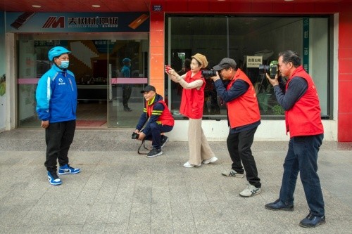 为了拍摄出“最美”人物的工作、生活状态,义工队选出40多位经验丰富的摄影师,组建了10个小分队,带着专用设备,不辞辛劳,奔赴温州市12个县(市、区),他们的足迹东至瓯江口新区,西到文成县和泰顺县,南到苍南县的马站,北到乐清雁荡山,行走了近5000公里,耗时20多天,拍摄了一万多张照片,300多条视频,提供给报社、网络平台等媒体,并在鹿城区五马历史文化街区禅街举办了“致敬!城市超人!”摄影展,一幅幅精美的照片,一个个感动的瞬间,获得了周边市民的连连称赞,也受到了温州社会各界的广泛关注和大力支持。义工队还邀请了一些“最美”人物现身做起了直播,给群众讲述自己的故事,向网友传递爱心正能量。