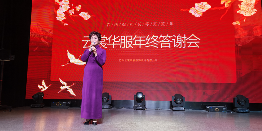 云裳华服创始人梁素云在答谢致辞中表示,自2017年发展至今,云裳华服已经陪伴大家走过了近4个年头,在各位的鼎力支持下,云裳华服发展迅速,取得了卓越的成就。尤其在过去的一年,更是在各大平台上都取得了一定的影响力,尤其是与李玉刚先生合作以来,云裳华服走上了更大的舞台。近期,李玉刚先生在国内各大卫视跨年晚会上的《万疆》再掀高潮,云裳华服的新年大作《百鹤衣》长衫盛装出场助力李玉刚。《百鹤衣》从设计图稿、面料特制、艺术定位、调色渐变到生产、绣花、处处精雕细琢,并由云裳华服董事长胡毅先生亲自精心裁剪,以匠人之心,工匠工艺亲手缝制,历经多月多时千针万线绘于情。同时,也要感恩桐乡磐十文化艺术创意有限公司总经理戴金海的大力支持,制作并提供专款丝绸智能调温濮稠“PUCHOU”面料的赞助。