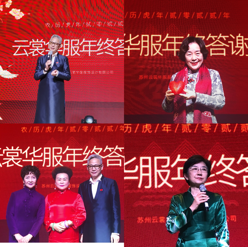 1月9日,由苏州云裳华服服饰设计有限公司举办的“云裳华服,感恩有您”2021年度年终答谢会成功举办,云裳华服创始人梁素云、著名资深媒体人陈凤玲、桐乡磐十文化艺术创意有限公司总经理戴金海、通快电梯(苏州)有限公司董事长董明辉、苏州帝奥电梯总裁杨爱珠等嘉宾以及云裳华服的VIP贵宾们参加了答谢会。