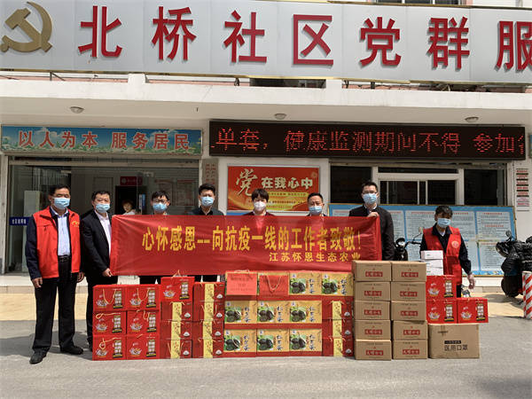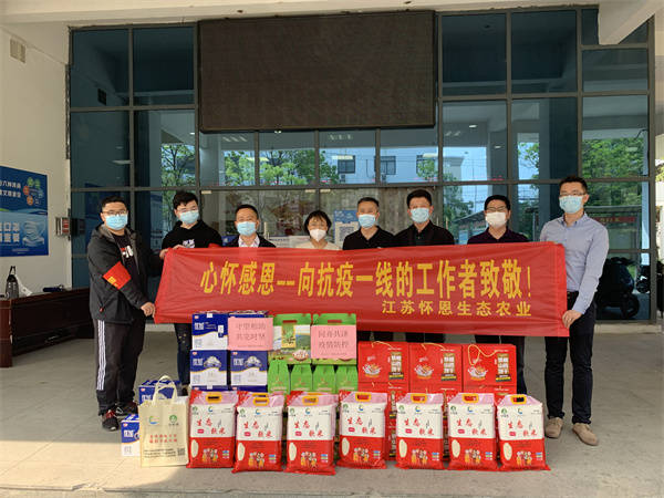 新一轮疫情防控阻击战打响以来,众多单位迅速行动,深入基层,全力保障社区疫情防控工作,江苏怀恩生态农业有限公司总经理带领公司员工与淮安广播电视台的同志来到府前街道北京北路社区、王家营街道营中社区和北桥社区、柳树湾街道的桃花坞社区,为抗疫人员和志愿者们送去医用口罩、防护面罩、牛奶、饼干、大米等价值三万余元物资,为社区防疫工作提供了有力的后勤保障。
