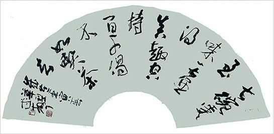 扇面:行书《吟茶诗》 李述声先生在长期的书法实践中,走出了一条兼容并蓄的道路,尤其是在古今结合上,深得古法,能够将传统诸家之长,进行有效的融合,凭借自己对书法的独到理解,写出了一番新气象。可以清晰地看到,李述声先生的书法规范洒脱,用笔稳健,笔力豪放苍劲,线条潇洒流动,具有奔驰纵横的气势,每一笔,每一划,都有一种沉实之感,而且还有一种厚重之感。而点画之间的关系,也非常清楚明了,既有彼此顾盼揖让,又有彼此依赖,首尾联系十分紧密,体现出一种和谐稳定的关系,显示出极强的线条领悟和把握能力。在用墨上,酣稳饱满、枯润有序、虚实相生,展现出其力度和气概。作品能给人一种基调高雅、气象正大、风格庄重而富有民族传统感、时代感,真正做到了思想性、艺术性与观赏性的统一。不仅如此,在他的书作中,观者还能够感受到一股强烈的正大气象,尤其是字形结构,让人感觉更加稳重,踏实,这也是欣赏其他人书法所没有的一种感受,尽显文人书法精神气韵,抒发出学养胸襟及审美追求。