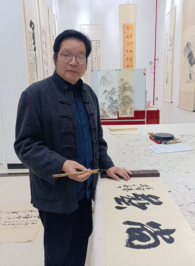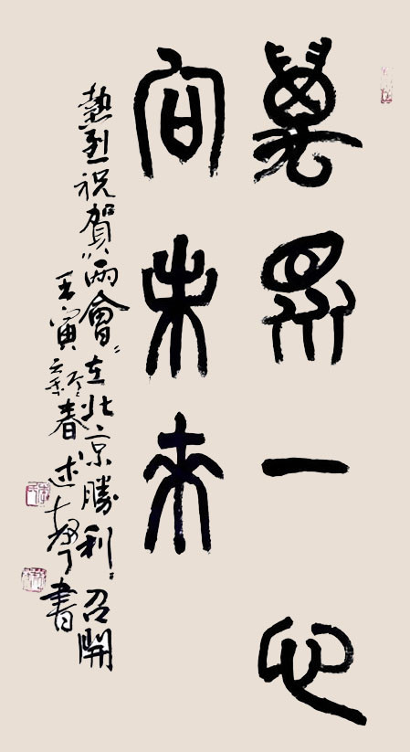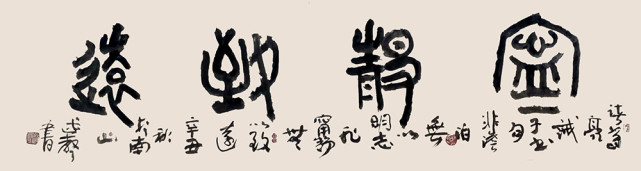 横披:篆书《宁静致远》136X34㎝ 李述声先生无论是用笔上,还是在字形结构上,还是在章法布局上,都体现出一种高超的技艺,和娴熟的驾驭能力,让人能感受到一股浓浓的书卷气。通过作品可以看到,运笔行笔上自然洒脱,点画安排合理到位,藏着一丝古朴苍劲之感,点画之间的联系也十分紧密,相互之间既有彼此照应,也有相互关照,形成一种和谐稳定的关系。在借鉴与融合,继承与发展的进程中,李述声先生注入时代气息和观念,并在以写意精神为主导的传统标准和美学特征中,追求表达境界和趣味。品读他的书法犹如其人格,灵动而不失韵律,潇洒却不落入俗气,自然中蕴涵着严谨,苍劲间流动着情怀,彰显着内心的宁静和博大。李述声先生对当下书法创作始终保持着一种严谨的态度,落笔行间精炼洒脱,保持着书写传统的文字格局,追求的是“中和”之美、以及形式与内容的和谐之美。李述声先生在创作中不断追逐新的体验、新的认识,不断开阔艺术视野、丰富艺术思想、锤炼艺术功力。能够用朴素温和的情感书写时代精神,使其焕发出一种悠扬的、优雅的生机勃勃的气息。他以一种温润明净的方式直击人的心灵,从而撞击出一种妙不可言的心灵回响。在这里,我们汇集了他的书法代表作和近年的新作,一起领略他别具一格的诗意韵律和清气扑面的艺术气象。 ![]() 李述声 字丛林,号华梨居士、斋号露草堂,1955年7月出生在浙江金华,毕业于南京大学,中国民主同盟盟员,是著名美术评论家、书画家郑竹三入室弟子。现任中国王羲之书画艺术研究院浙江分院执行院长,兼任北京京华美术学院教授,浙江传媒学院书画研究院研究员,国家一级美术师,中国书法家协会会员,中国书法家协会浙江省书法考级中心评委,郑竹三艺术中心首席研究员,金华市智者寺书画楹联文化顾问。个人传略载入《中国当代书法家辞典》。
