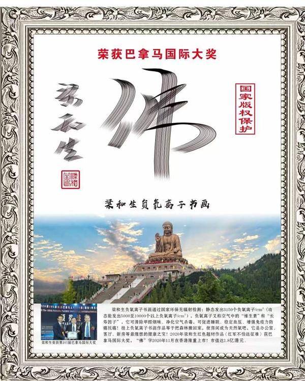 梁和生与师傅张文祥 他把周易五行与书画结合,创造了《风水书法》、《易经书法》等, 第一个荣获巴拿马国际大奖的书法家! 他把金融资本与书画结合 ,第一个书法在香港上市,“福”和“佛”的市值高达1.8亿港元! 他把科技与书画结合 ,第一个发明负氧离子书法,使办公室充满森林般的负氧离子空气,通过了中国国家及欧盟环保检测! 梁和生向超2000名学生儿童捐款捐物,获“中国十大杰出爱心人物”荣誉! 梁和生此次被哈佛大学艺术学院增补为荣誉院士,也确实说明梁和生属中国顶尖艺术人才了。 梁和生代表作汇报: 2020年11月12日,佛字在香港上市,市值最高达1.8亿港元