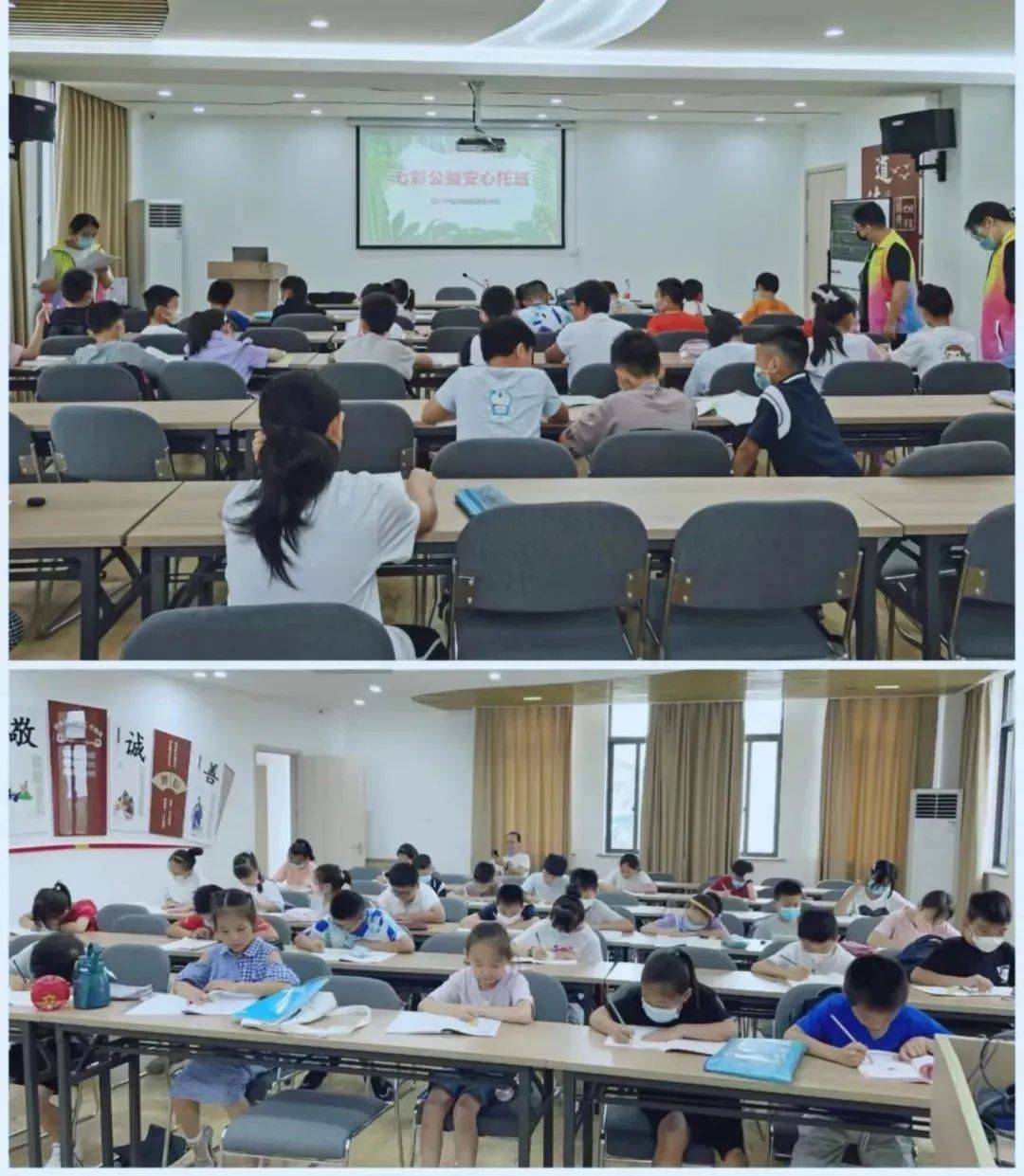暑期托管,安全是家长关心的重中之重。开班第一天,宜城社区教育中心为确保托管班正常有序地开展,早早安排各社区对应的联络人,提前到达托管场所,安排家长签到,落实学生座位,确保课堂秩序;放学时,学生必须交到家长手里,如有学生是自己出行,也让家长务必在群里回复,保证学生安全到家才放心。
