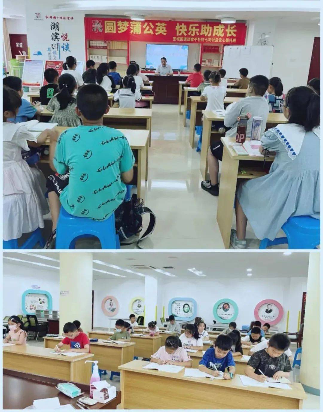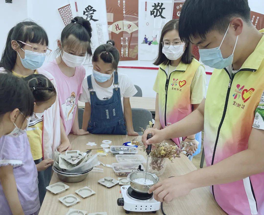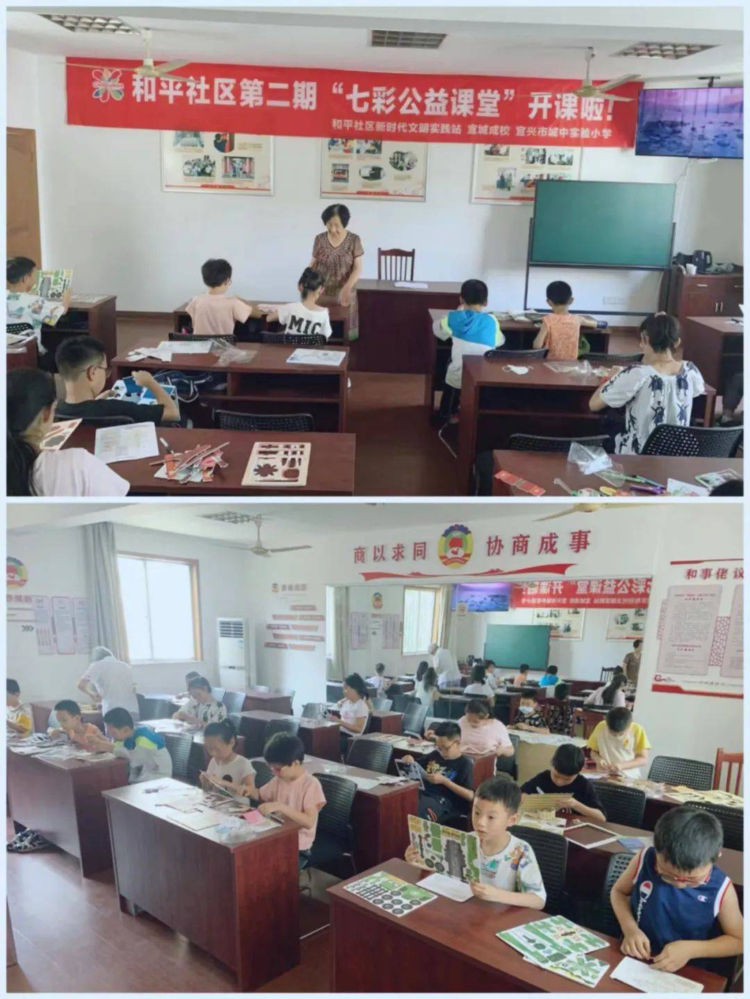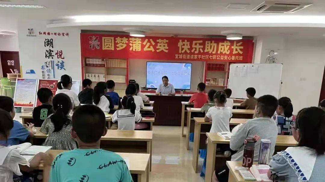 编者按: 学生放假,家长上班,暑期里谁来带孩子?为百姓办实事——2022年宜兴市小学生暑期社区“七彩公益安心托班”自6月下旬开始报名以来,一直受到社会的广泛关注,家长孩子的热烈追捧。如今,暑假生活已正式拉开帷幕,社区教育阵地作用发挥得如何?安心托班里的孩子学了些什么?宜兴教育公微将陆续推出全市各地“七彩公益安心托班”的实施情况,敬请关注。 今天为您推出的是 宜城街道社区教育中心 根据市教育局有关通知精神, 宜城街道社区教育中心积极衔接社区、小学、关工委等,在文峰、和平、谈家干、东虹、徐坝、大同社区开设“七彩公益安心暑期托班点”,托班数量在去年两个社区试点的基础上增加到了六个。 为双职工家庭子女提供暑期看护孩子的服务,开展丰富多彩的课程——这种“官方带娃”的模式,一经推出便受到学生和家长的“追捧”,各社区名额迅速报满。7月6日,宜城街道六个社区同时开班。