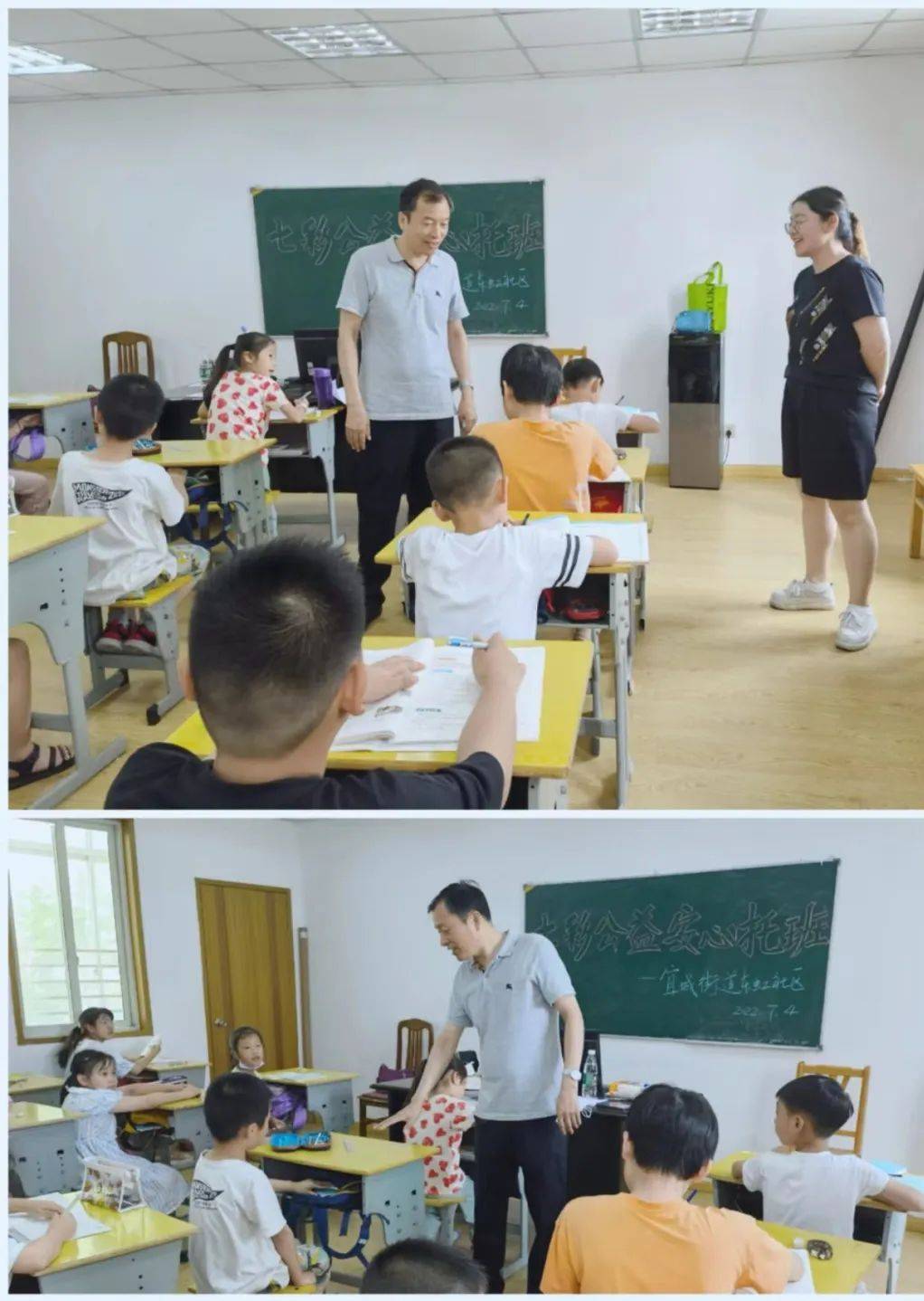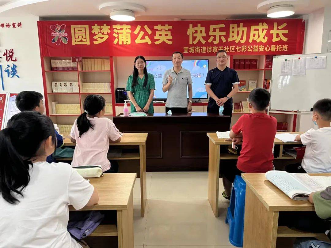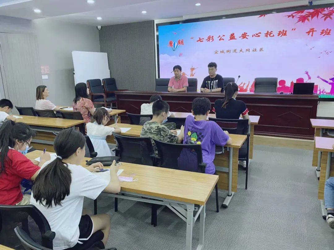 ▲大同社区 宜城街道社区教育中心领导陈伟、汤建琴主动到每个社区做开班动员工作,了解并关心孩子们的学习情况和需求。