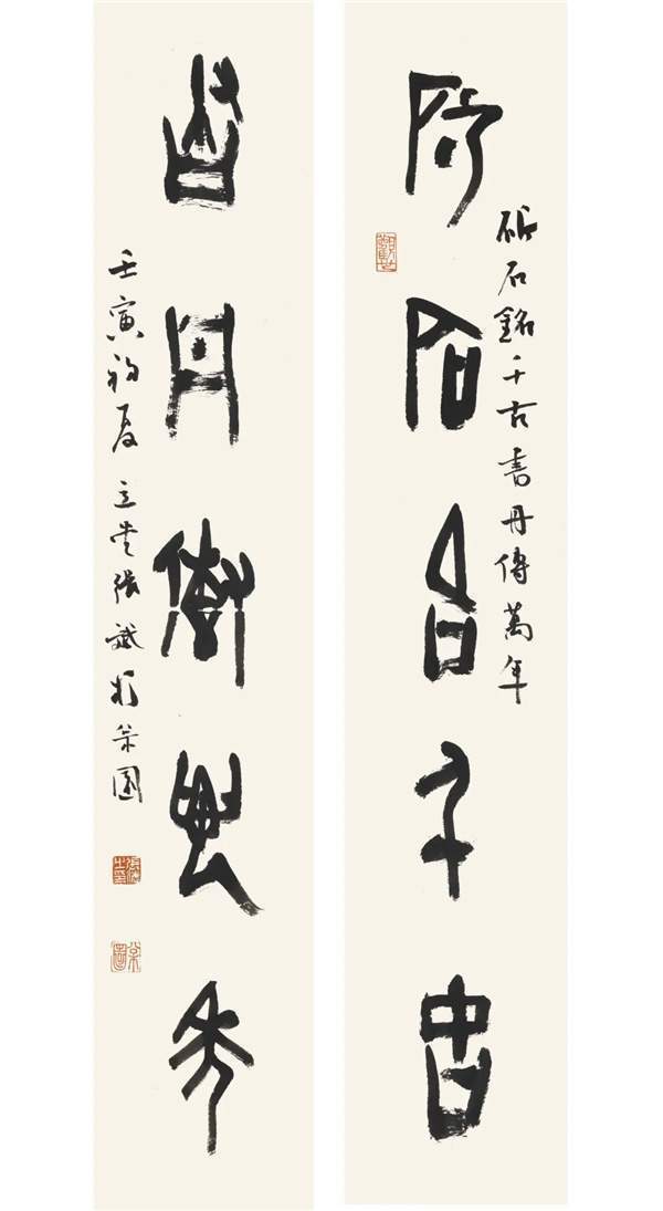 斫石书丹五言联 尺寸:83cmX15cmX2