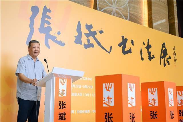 中国艺术研究院博士生导师、中国书协草书委员会委员陈海良讲话 张斌向各位来宾致答谢辞。他希望通过此次展览,能得到大家的批评指正,为书法的事业发展,贡献出自己的一份力量。