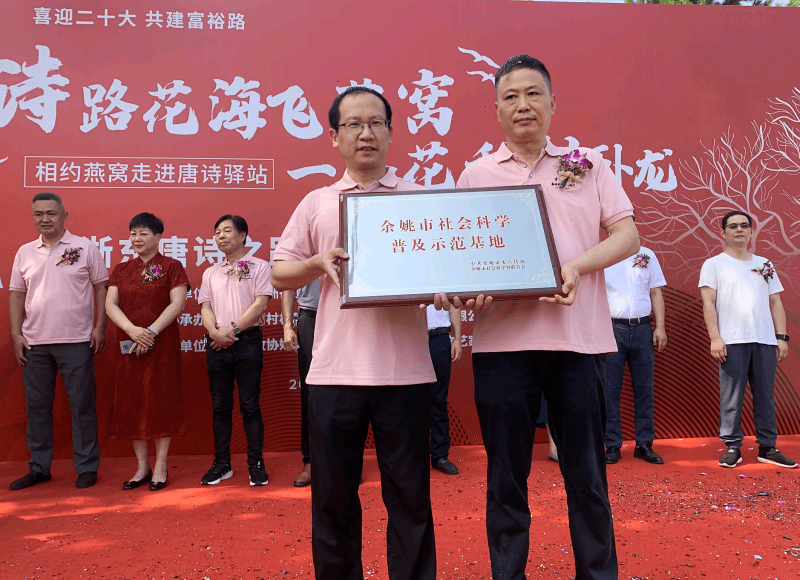 喜迎华诞,举国同庆之时,2022年10月1日上午,“诗画梨洲——四明山水唐诗诗路”燕窝驿站,在我国历史文化名人黄宗羲家乡,浙江省余姚市梨洲街道燕窝村大岭岗启动。当地街道、村委会和市有关部门人员40余人,严格按照防疫要求参加了简短的启动仪式。活动以唐诗之路燕窝驿站高4米“诗碑”揭幕为标志,诗路驿站竹楼、诗路唐诗大鼓、诗歌朗诵、诗路精品典藏科普馆开馆、重走千年唐诗之路燕窝古道、余姚市社科普及基地授牌的形式,全面展示浙东革命根据地四明山老区梨洲街道燕窝村,一个高山台地村落的诗路驿站风土人情和文化底蕴,为观众献上了一场盛大的美丽乡村盛宴。