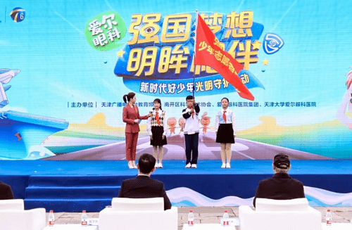10月30日上午,为更好助力新时代好少年追梦,加强国防教育,强化少年儿童国防观念,天津广播电视台、南开区科学技术协会、爱尔眼科医院集团、天津大学爱尔眼科医院联合主办的“强国梦想明眸相伴·新时代好少年光明守护行动”在小站练兵园拉开帷幕。市关工委、市文明办、市科技局、市科协、市国防科技工业协会、以及南开区科协、区宣传部等负责同志出席,携手助力孩子们的爱国强军梦想。 天津广播电视台教育频道总监陈国望致欢迎辞,著名军事专家、教育专家、眼科专家分别为孩子们讲述了国防、教育及爱眼护眼相关科普知识,吸引了300多位家长和孩子到场,近30万人次通过网易、津云和天视云课堂等平台观看活动直播,参与互动。