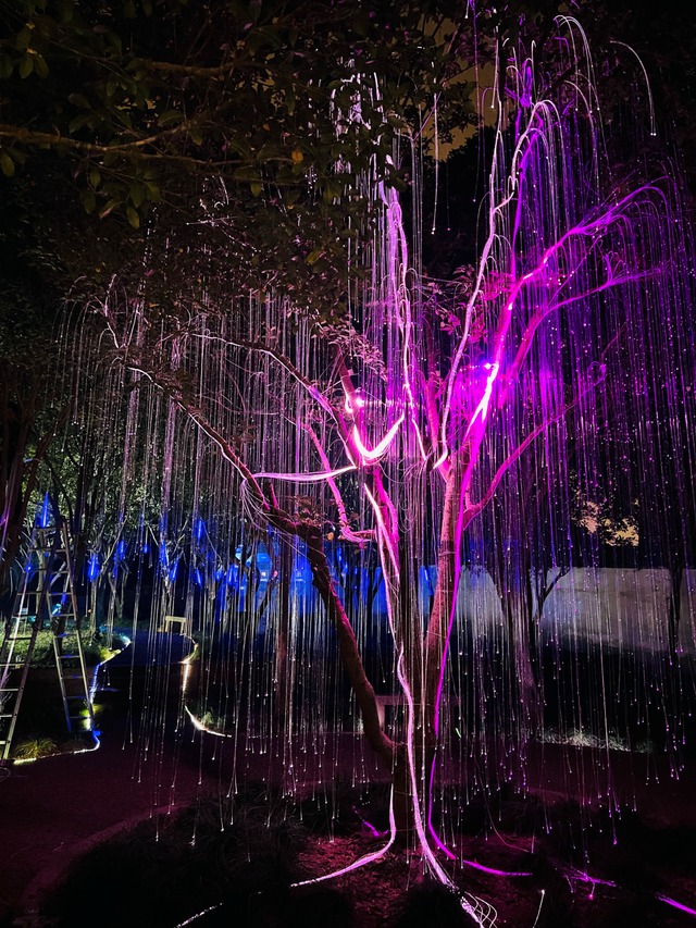 幽幽闪烁的光纤生命树屹立在江心洲;而在江枫洲前非遗街头互动表演轮番上演。