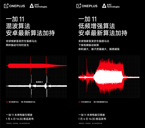 一加 11 与瑞声科技联合投入了近百名各领域高级研发工程师,耗时近 1 年,投入近千万研发费用,实现软硬件多项技术突破,打造全新的第四代马达技术平台——全相磁路技术平台。仿生振感马达是目前安卓最大的 X 轴线性马达,高达 602 立方毫米。超大体积带来强劲有力的振感。此外,一加采用全新的磁路设计,带来全新的全相磁路技术,实现超快启停反应,让振动感即按即振,清脆不拖沓。在RichTap的低频增强算法加持下,仿生振感马达能呈现更为细腻的振动效果,游戏的风吹草动、水波荡漾,甚至是轻微的呼吸声,都能通过振动感知得一清二楚。一加 11 还联合瑞声科技打造混波算法,打破手机马达单一振动的局限性,首次在手机上实现两种振感叠加呈现的振动革新。