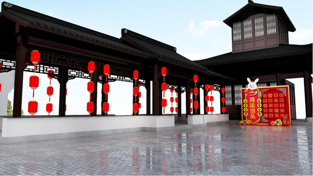 ①趣味猜灯谜 在挂满灯谜的连廊上,游客可以沉浸式体验年味灯谜带来的乐趣;