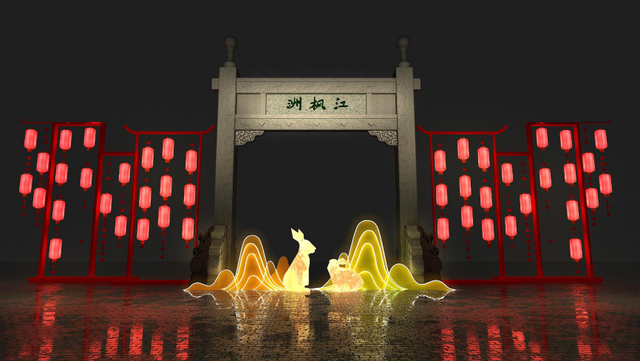 ③同点飞鱼古灯 现场安排手工灯笼制作师现场编制灯笼, 现场设摊位售卖手工纸灯笼和手提飞鱼灯。市民手提飞鱼灯走在江枫桥上,穿越汉唐盛世,别具特色;