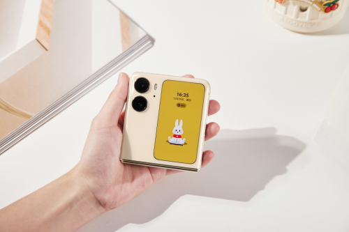 OPPO Find N2 Flip采用了迄今为止最理想的竖向折叠解决方案,搭载3.26英寸的超大尺寸外屏,通过深度优化,Find N2 Flip的外屏实现了开合使用无缝衔接的体验。通过外屏智慧卡片,除了显示和回复信息、接听电话等功能,查天气和日程也都可以借助外屏一键查看。用户还可以给外屏自定义各种动态主题和壁纸,还有趣味十足的互动萌宠壁纸,可玩性和实用性兼具。
