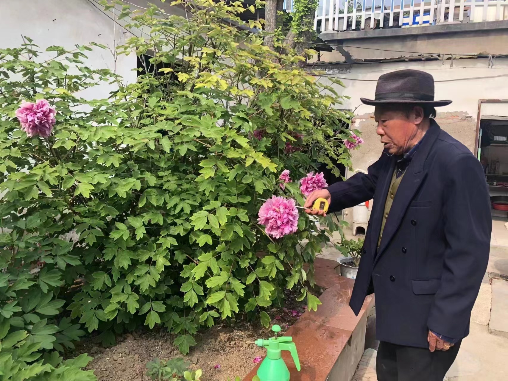 “这株牡丹,株龄已超过120多年,在我家也有好几十年了,今年开出80多个花朵,花球最大直径达25公分……”说起花来,老江爹就像说起自家的孩子,有说不完的话。