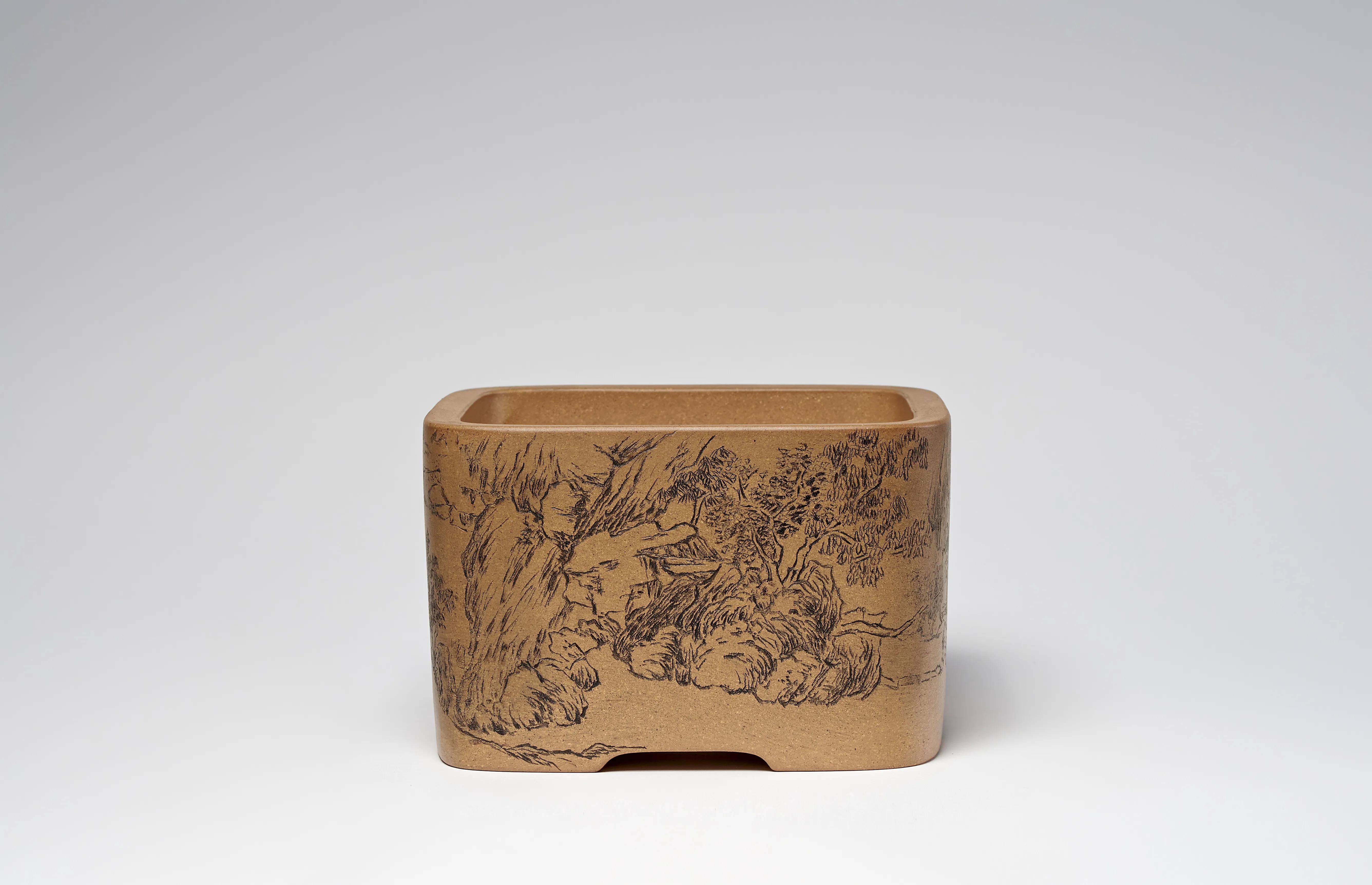 庞博,女,2000年元旦出生于江苏宜兴。毕业于南京艺术学院,主攻山水,师从张筱膺老师,现任宜兴市紫砂书画艺术馆艺术总监,作品曾获全国陶瓷书法作品展三等奖,江苏省职业院校技能大赛一等奖。无锡市‘大阿福’杯工艺美术、民间文艺及乡土技艺优秀作品展一等奖,第十三届(艺博杯)工艺美术精品大奖赛金奖。