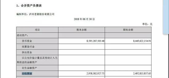 无独有偶。 截止2018年上半年末,泸州老窖应收票据余额约为29.58亿元,和期初余额24.93亿元相比,增幅在18%以上。