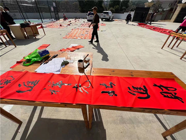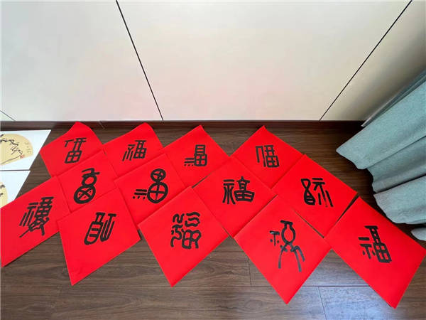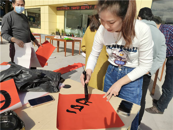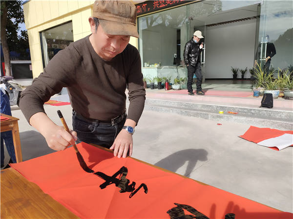 为进一步推进艺术乡建,1月12日,浙江省金华市硬笔书法家协会武义办事处一行5人,赴金武新城北岭社区,开展"送万福进万家"义务为民写春联活动。(楼子洪)
