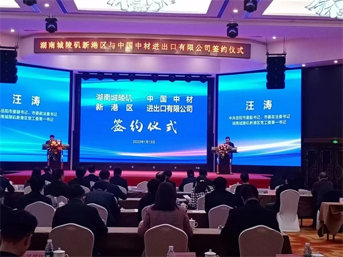 新年谋开局,力争开门红。1月13日,中国中材进出口有限公司与湖南城陵矶新港区签订合作协议。中国中材进出口有限公司党委书记、董事长、总经理韩瑞明,岳阳市委副书记、市委政法委书记、城陵矶新港区党工委第一书记汪涛,市直相关部门负责人,以及城陵矶新港区、岳阳自贸片区、城陵矶综保区负责人,23家在岳金融机构负责人参加。