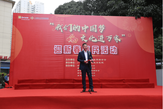广西医大开元埌东医院党委吴想军书记在致辞中表示,广西医大开元埌东医院作为红色央企华润集团旗下医疗机构,凭借国际领先的高端医疗设备和国内顶级的医疗技术,为广西民众提供高质量医疗健康服务,持续提升居民的健康意识和自主保健能力,为健康青秀、健康南宁、健康广西贡献出了央企力量。为喜迎兔年新春,能够与南宁市文联、南湖街道一起,为属地百姓提供一场高质量的精神文化盛宴,驻区央企义不容辞。