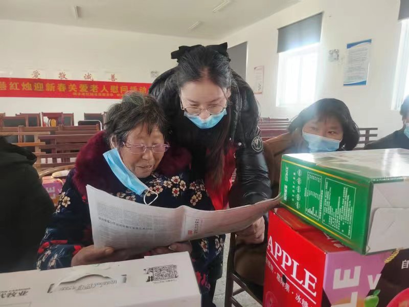 ![]() “送问候、送健康、送关怀,有这么多好孩子和志愿者奉献爱心,就像家人、亲人一样,关爱我们,帮助我们,让我们生活得舒心、开心,没有后顾之忧。”中兴居委会一组94岁的空巢老人朱兰芳非常开心,不住嘴说着感谢的话。 ![]() 在中兴居委会党群活动中心的会议室里,四张圆桌上摆放满满当当的糕果、牛奶、苹果等食品,显得“年味十足”。为了提升村居特困老人的幸福感,响水港红烛志愿服务队、响水县红烛公益协会,在新春佳节来临之际,为特困老人们送来了节日礼品,让老人们过个“幸福年”。江苏盐城响水港开发集团党群工作部副经理蔡雅静还代表团队,给在场的10多位老人每人送上了一份“压岁钱”,并细心询问他们身体情况,与老人聊起了家常。她说:“送冬日温暖,表新春祝福,就是推动村企共建向更深层次发展,以更好服务保障特困老人幸福生活,过一个健康愉快的春节。” ![]() “我能看清报纸上的字了,我能读报纸了!”中兴居委会五组80岁的老奶奶周立梅在志愿者的帮助下,调试到了自己合适戴的眼镜,高兴地笑了。在活动现场,江苏省响水县易视康视力服务中心的爱心志愿者吴炳东给老人们送来了老花镜,帮助老人们佩戴调试。 ![]() 当天下午,志愿者们还带着慰问品和“压岁钱”,前往运河镇和响水镇看望慰问几位腿脚不便的特困老人。