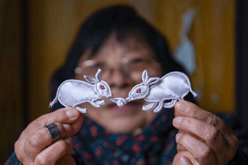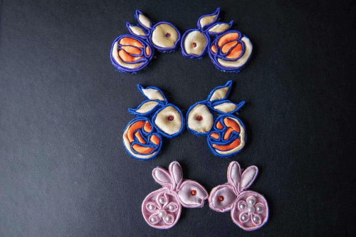 余姚盘纽的特点,就是盘纽材料取材比较简单,每副布纽扣只需要二条一尺长、2寸宽的布条即可(根据衣服大小,布条长短也适当增减),布条颜色要与整件衣服的颜色协调或相配。布纽扣式样很多,有一字扣、蝴蝶扣、双钱结、凤尾结等,但一件衣上的布纽扣要统一。每副纽扣有雌雄二结,雌结的特点是布辫中间弯一个纽扣眼,雄结的特点是布辫中间盘一个半寸左右的圆珠形,圆珠大小与扣眼相配。 作者:谢建龙 李洁美 编辑:毛凤君 摄影:李洁美 审核:杨鹏飞 |