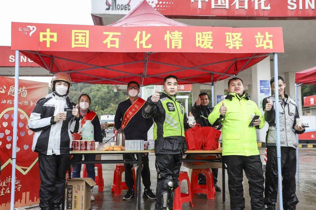 16:00 回家路上遇困难,暖心服务来驿站 春运回家的路上赶上了阴雨天,这路真不好走,在佛山务工的黄盛海夫妻走走停停,下午16:00时才到达广西梧州石油情暖驿站。黄师傅说:“还有100多公里就到家了,本来想挺一挺开回家,可是手套和鞋子都湿透了,太冷了。”“师傅,暖炉开好了,快来烘烘身子,喝杯姜茶歇歇脚……”驿站工作人员连忙招呼道。“我们这里有新的手套,你们换上,别着急,把袜子烘干再上路,这样才能保证行车安全。”黄师傅感动地说:“真没想到,这个点数,还有这样的服务。” 春运第4天,在佛山务工的李一辉早早将行李打包好在摩托车上,准备踏上自己的南充返乡之路。出发前,李一辉总会来到佛山龙山加油站,在这里加满油,将自己更多的包裹免费邮寄回家,调整状态轻装出发。不巧,天空下起连绵细雨,雨水时不时打湿他的头盔模糊视线,李师傅却不以为意,抹一抹头盔上的水珠,脸上是难掩回家的喜悦。 春运回家的路上遇上困难,记得来中国石化情暖驿站,我们一直都在,守护您平安回家。