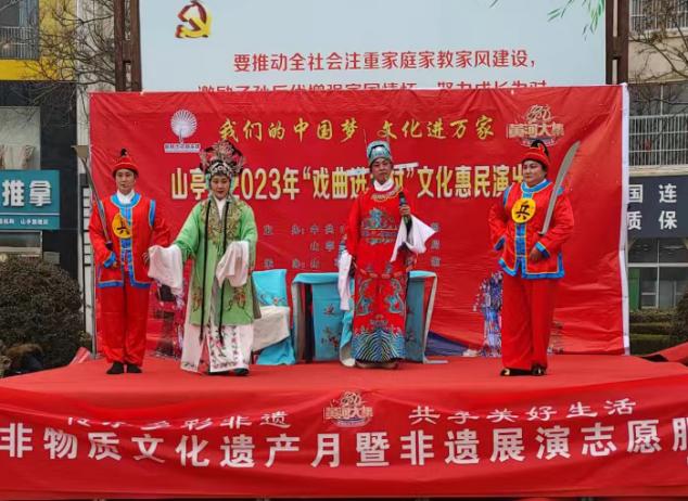 春节期间,枣庄市开展“我们的中国梦”——文化进万家暨黄河大集冬春文化惠民季系列文化活动,以各地公共文化场馆、百姓大舞台、文体广场、剧场剧院等阵地为依托,举办群众喜爱的送戏、展览、演出等文化艺术活动,组织开展群众性小戏小剧展演、书画作品展览、“村晚”、民间游艺等新春期间重点品牌文化活动。滕州市举办“2023首届枣庄(滕州)市非物质文化遗产购物节”,开展非遗传承实践活动。山亭区、薛城区推出“民间文化艺术之乡线上线下专题风采展示推广活动”;峄城区举办文化馆里过大年——峄城欢乐汇•2023年“我们的中国梦”文化进万家暨黄河大集系列活动;市中区举办 “我们的中国梦——文化进万家”暨文化科技卫生“三下乡”活动,2023年迎新春“黄河大集”民间游艺文化展演活动。精彩节目吸引广大群众积极参与观看,让人们尽情领略传统文化的魅力。