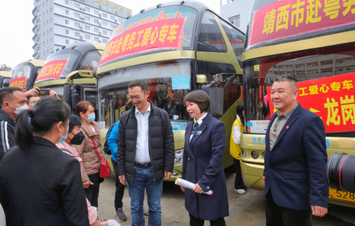 (图为:2023年靖西市“就业暖心•桂在行动”专项服务暨“点对点”送工服务免费乘车活动现场) 2023年,我市依托东西部劳务协作,在稳定和扩大转移就业规模的前提下,着力优化就业结构,提升就业质量,促进农村劳动力转移就业提质增效,助力乡村振兴。靖西市人社局充分发挥职责职能,加强与广东龙岗等劳务输入地的对接,畅通返岗务工服务衔接渠道。通过开展爱心专车“点对点”送工服务工作,全力解决务工人员返岗就业问题。