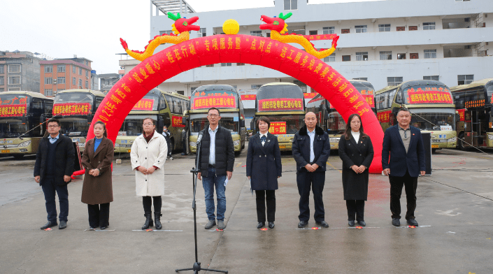 (图为:市政府领导、市人社局、市乡村振兴局、市交通运输局等相关部门领导出席活动) 在启动仪式现场,工作人员为乘车群众发放“爱心”大礼包,包里装着口罩、面包、牛奶、方便面等爱心物资及相关政策宣传材料,并叮嘱大家做好个人防护,平安顺畅到达务工地点。