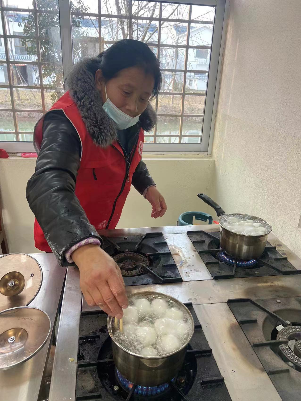 党员志愿者将包好的汤圆下锅,用爱心煮出了浓浓“年味”。他们细心地把象征“团圆美满”的汤圆分装好,送给辖区里的孤寡老人和特困户品尝。