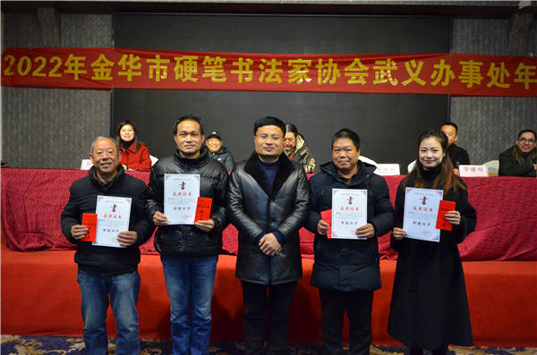 2月4日立春,2022年浙江省金华市硬笔书法家协会武义办事处年会,在红泥商务酒店隆重召开。参会的有市硬笔书协主席傅延禄、副主席兼秘书长费昆琪、副主席李建明和王红明,及中硬协会员何国茂等领导。