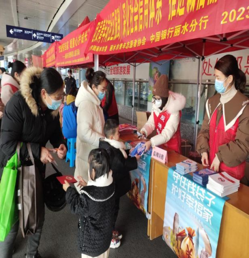 为深化社会信用体系,提高人民群众的防范意识,2023年1月18日下午,共青团丽水市委下属单位丽水市青年志愿者协会牵头在丽水市高铁站举办主题为“微笑丽水志愿服务广场”活动,中国银行丽水市分行、丽水市住房公积金管理中心、市机关事务管理局、莲都东升社区等8家单位共同参与活动。中行丽水市分行从银行视角出发,开展“守住钱袋子.幸福过大年”迎新春、送祝福的现场反洗钱宣传活动。